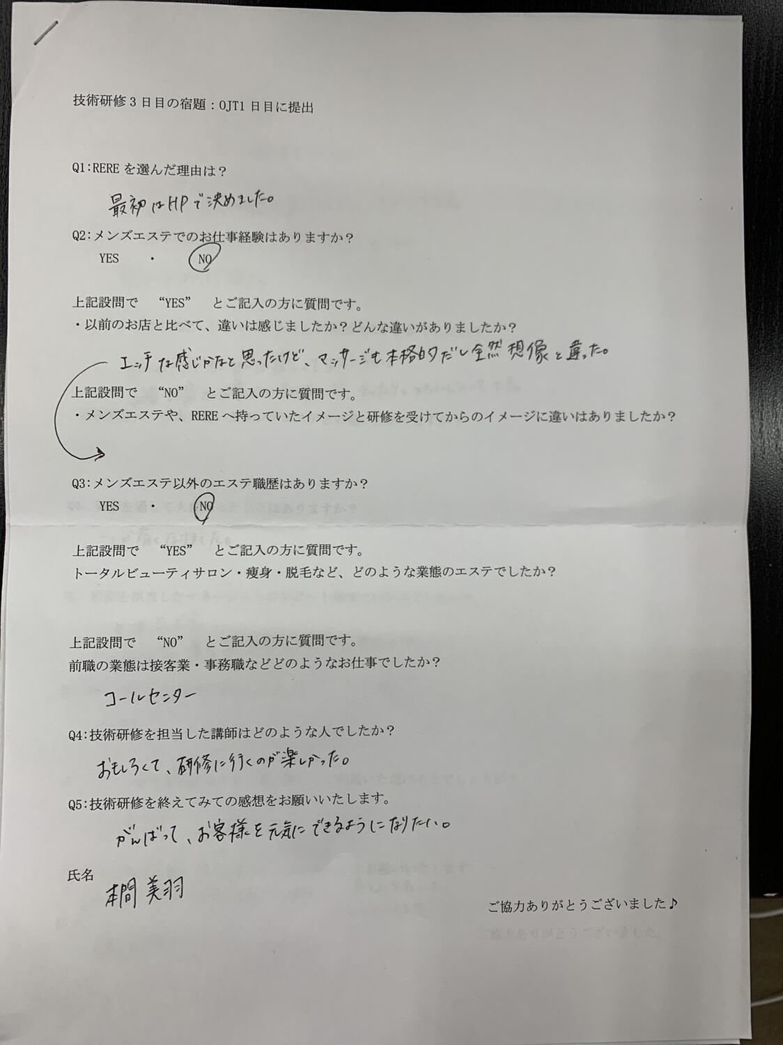 後日店舗研修を終えた【本間美羽】さんにレポしてきました
